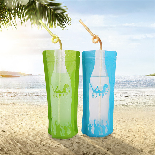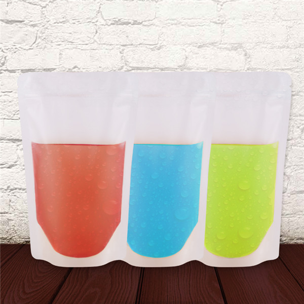 Beverage Pouch with Plastic Straw Hand-held, Clear Frosted Reclosable Zipper Stand Up Juice Drink Bag Images |